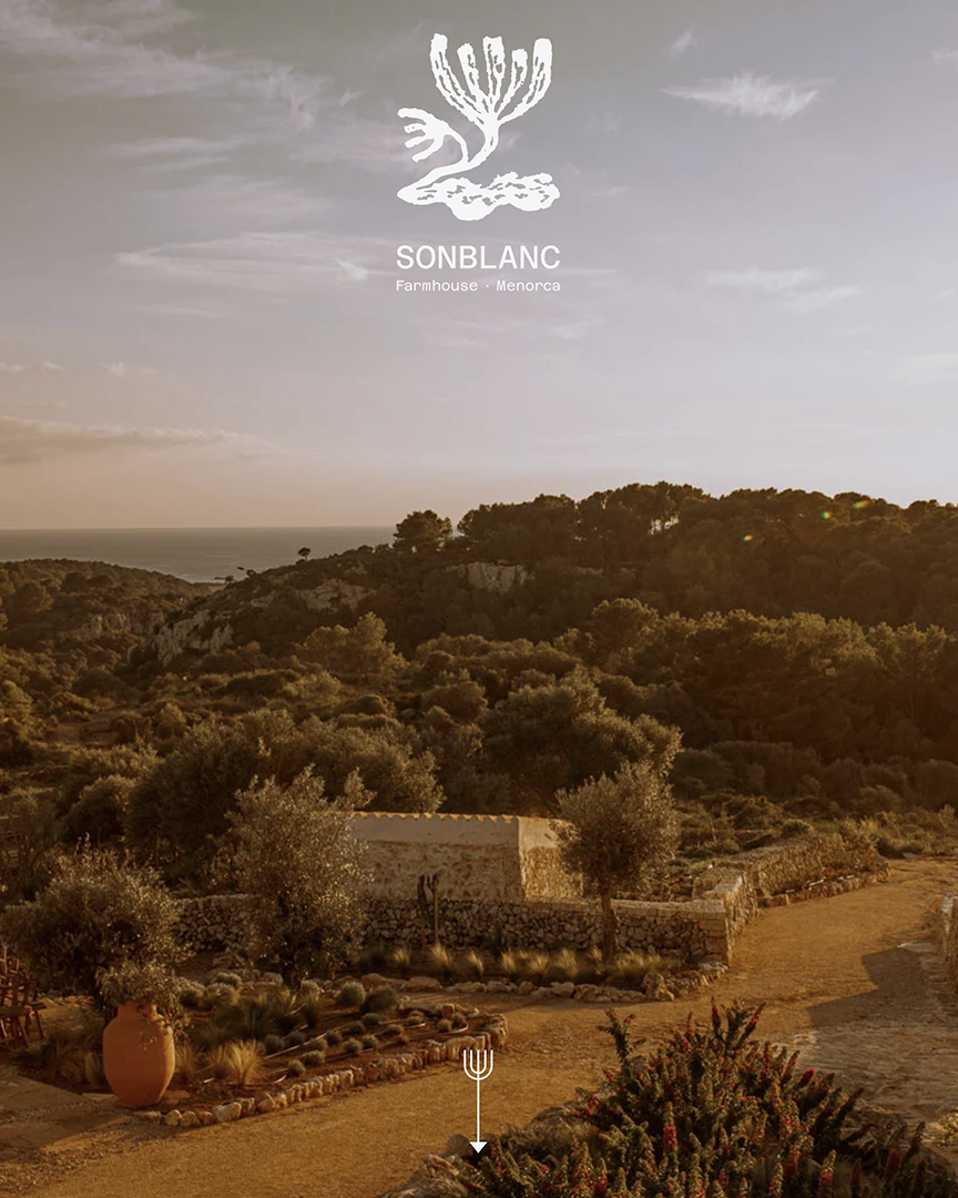 Son Blanc, un projet hôtelier imaginé par Benedicta Linares Pearce et Benoît Pellegrini sur l’île de Minorque. Ce lieu singulier, une ancienne ferme traditionnelle transformée en modèle d’autosuffisance, m’a inspiré une identité visuelle à la fois lumineuse, sobre et profondément enracinée dans son environnement.
